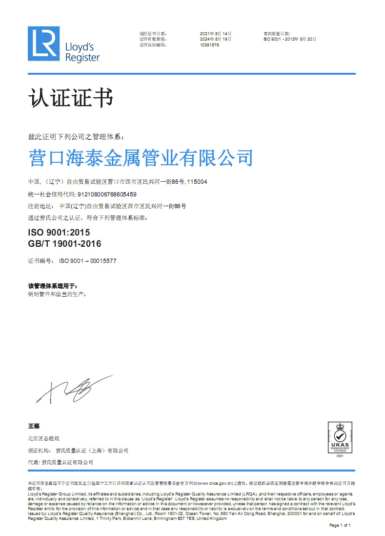 營口海泰金屬管業(yè)有限公司成立于2001年,是專業(yè)生產管道配件的制造經營企業(yè)。公司占地面積兩萬五千平方米,坐落于中國遼寧省港口城市營口。營口一市兩港(營口港、鲅魚圈港),東臨大連港四季通航,陸路運輸四通八達交通便利。